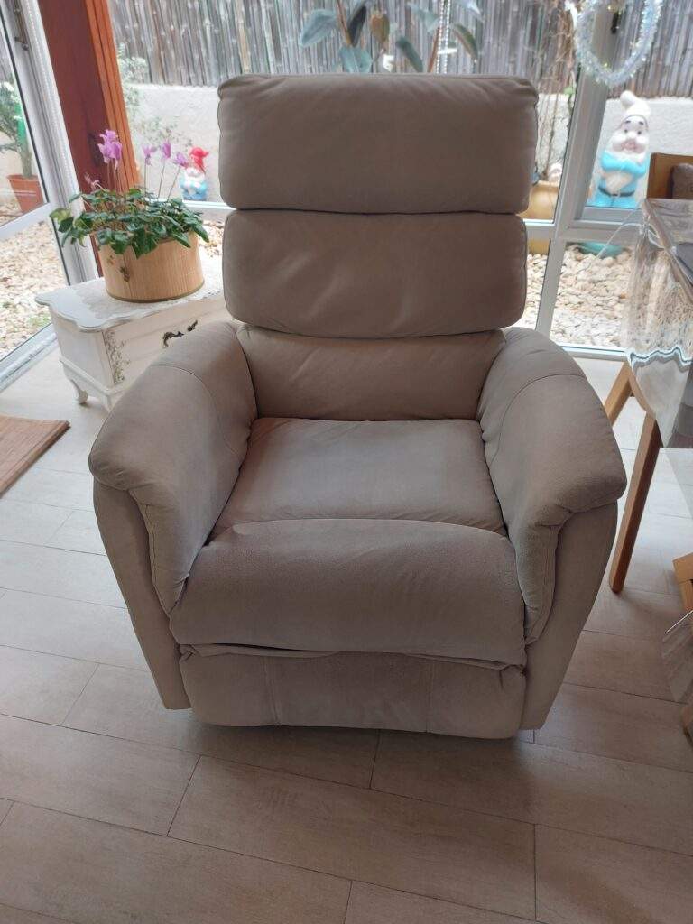 למסירה כורסא ממזכרת בתיה, דרוש קצת ניקוי והקפיצים במושב הישיבה מורגשים אבל בסך הכל נוחה והמנגנון פתיחה עובד מצויין. ידנית ולא חשמלית. קומת קרקע. 0525658948
