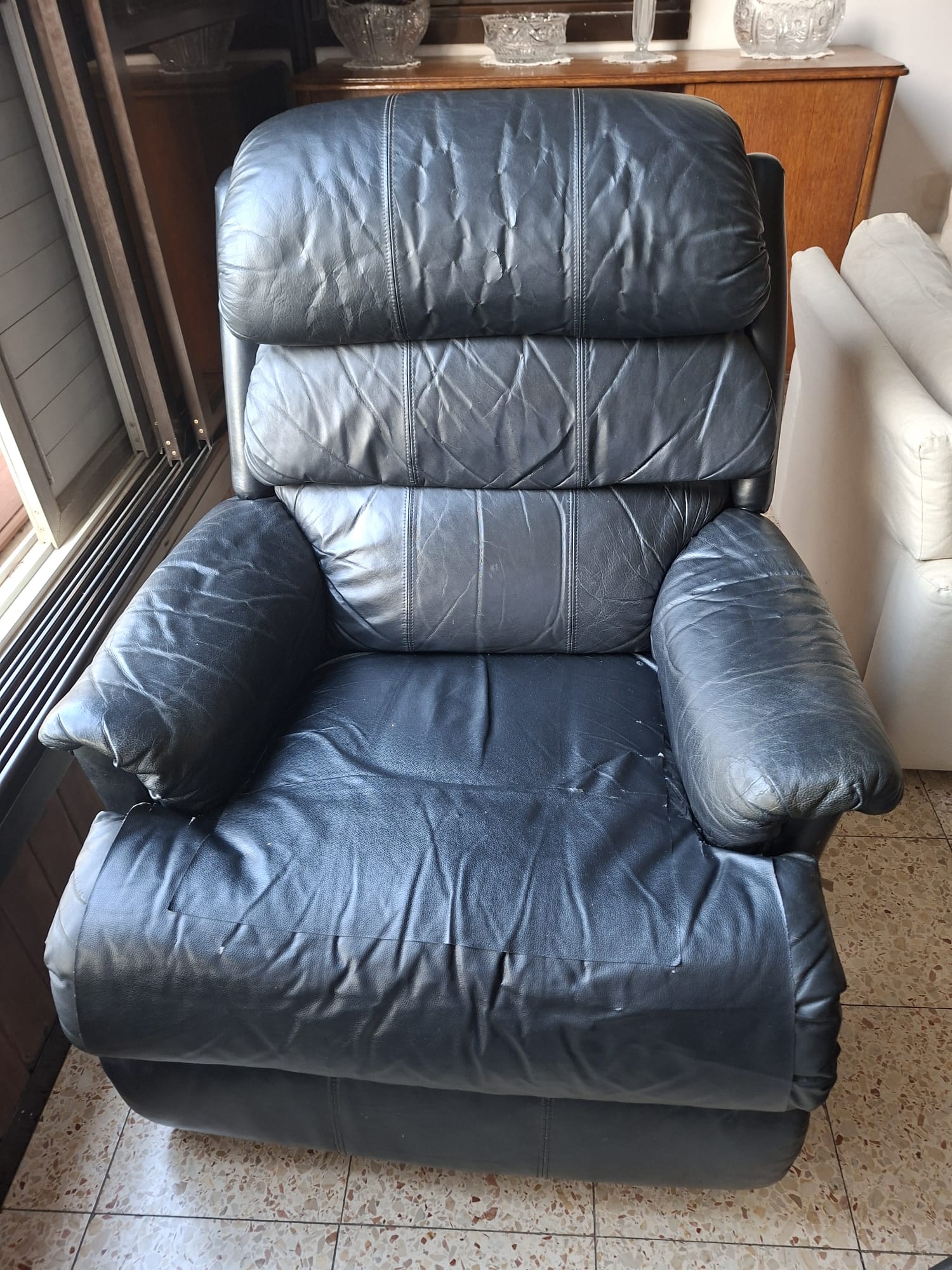 כורסת טלויזיה נוחה ביותר. המושב קצת התבלה לפיכך מודבק עליו טפט. מנגנון ידני מרים את ההדום. ניתן להשכיב את הכורסה. גובה כ 1 מ' רוחב כ 90 ס"מ. קומה שנייה יש מעלית