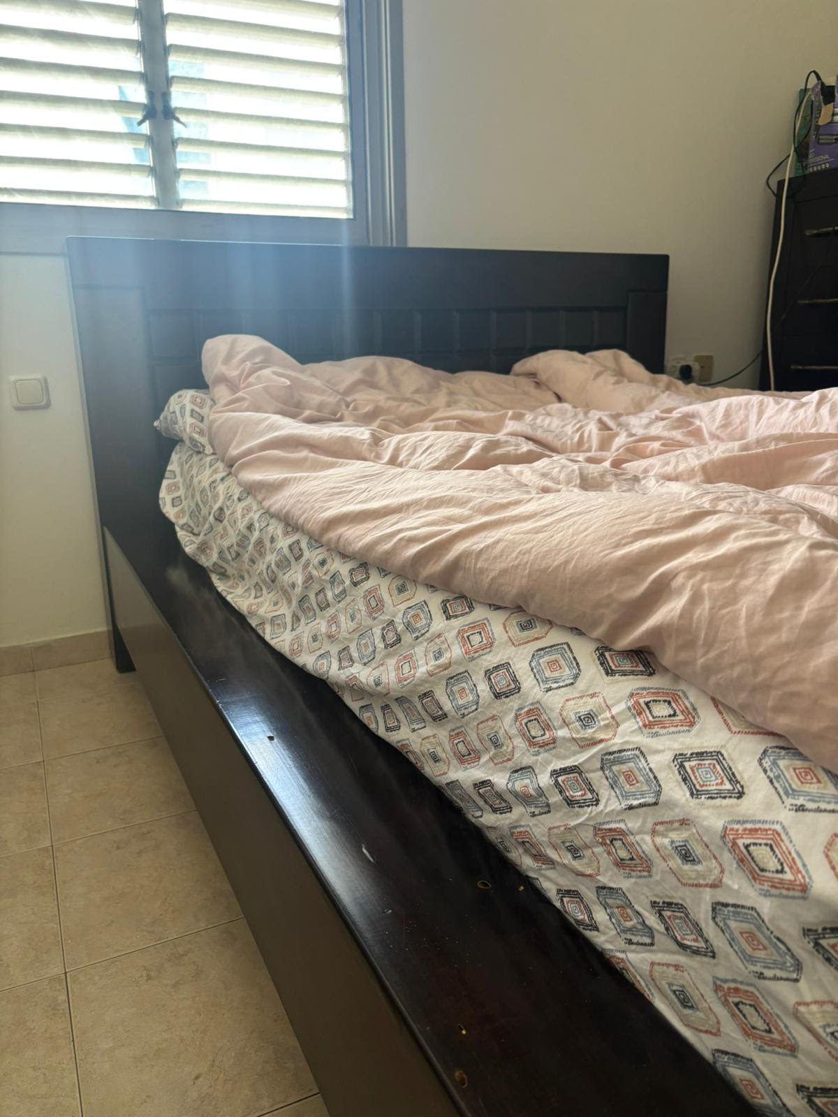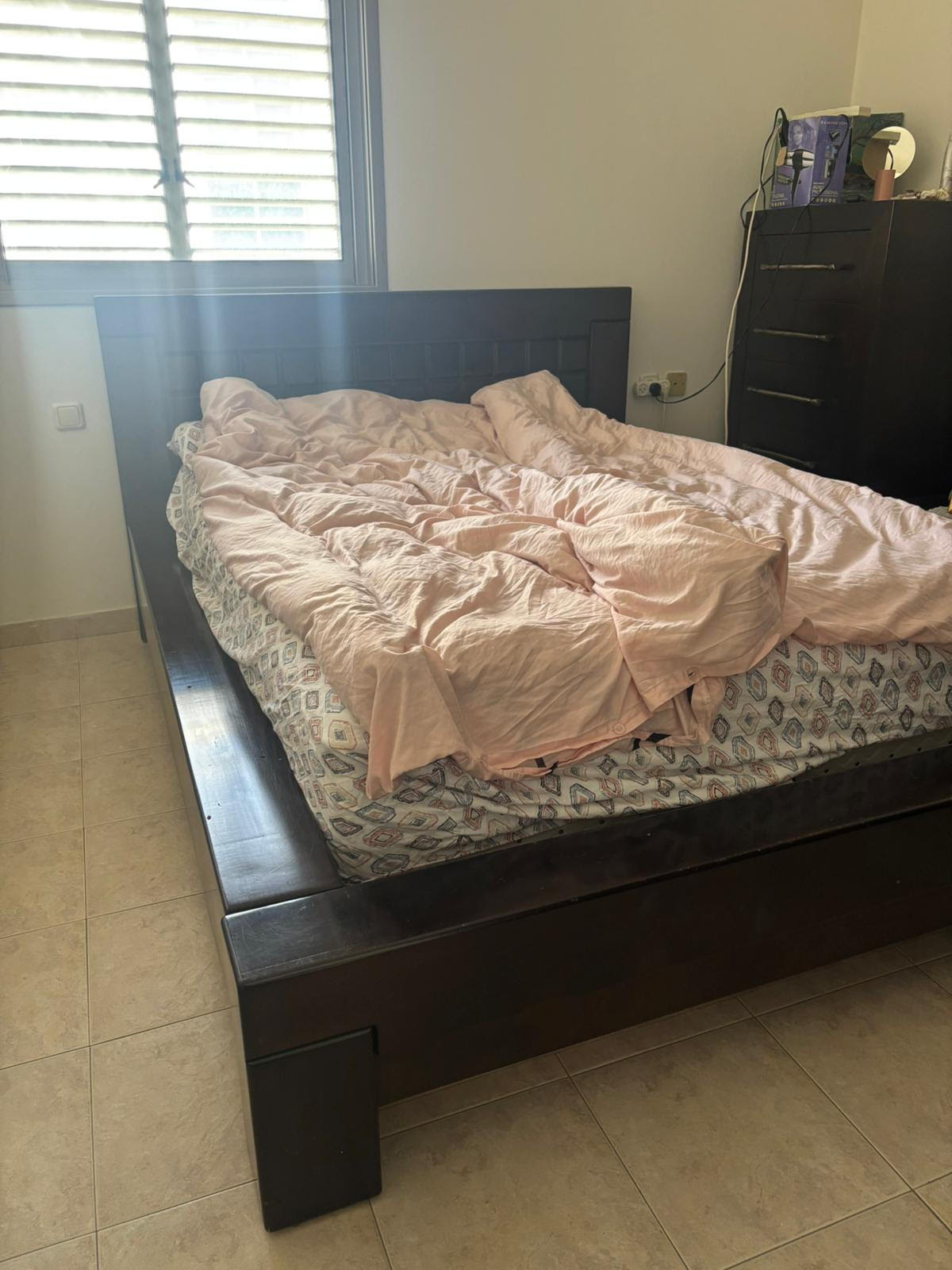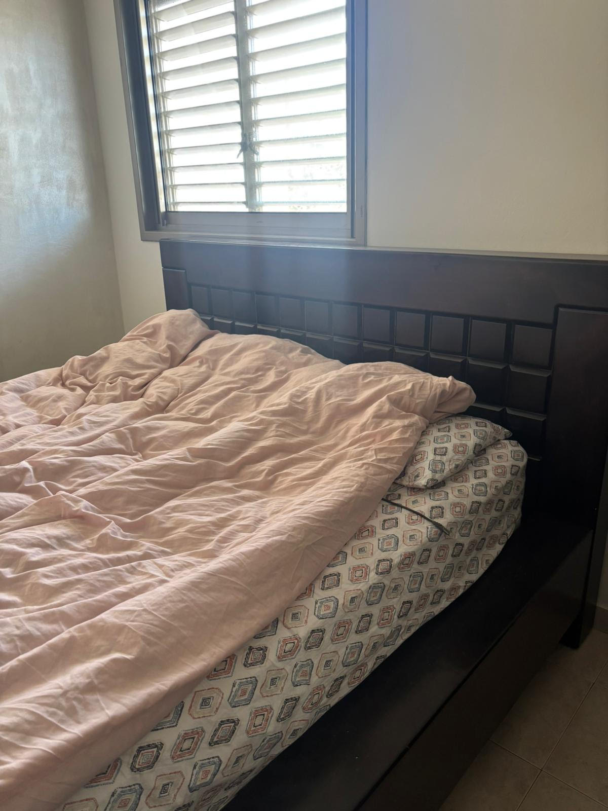 מיטה זוגית מרשימה (ללא המזרן) מעץ מלא. ארגז מצעים ענק!!צבע חום כהה - וונגה. מתאימה למזרן 140X190 או 140X200מצב די טוב