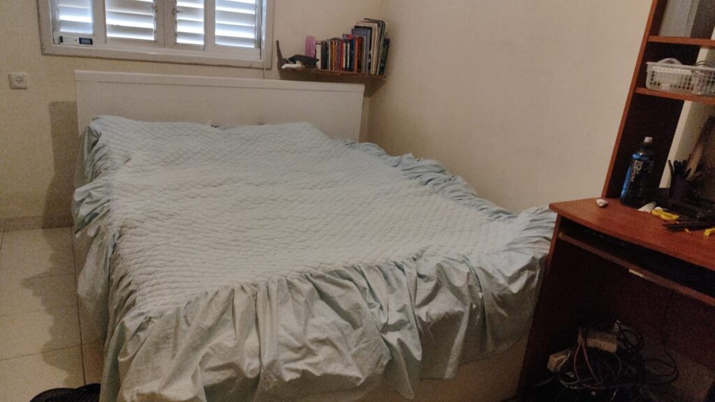 מיטה זוגית עם מזרן משומש במצב מצויין מסגרת • רוחב: 176 , אורך: 208 , מזרן אורך 200 רוחב 165 • קומה: 1 • יש מעלית אבל זה לא ממש רלוונטי למיטה • נדרש פירוק