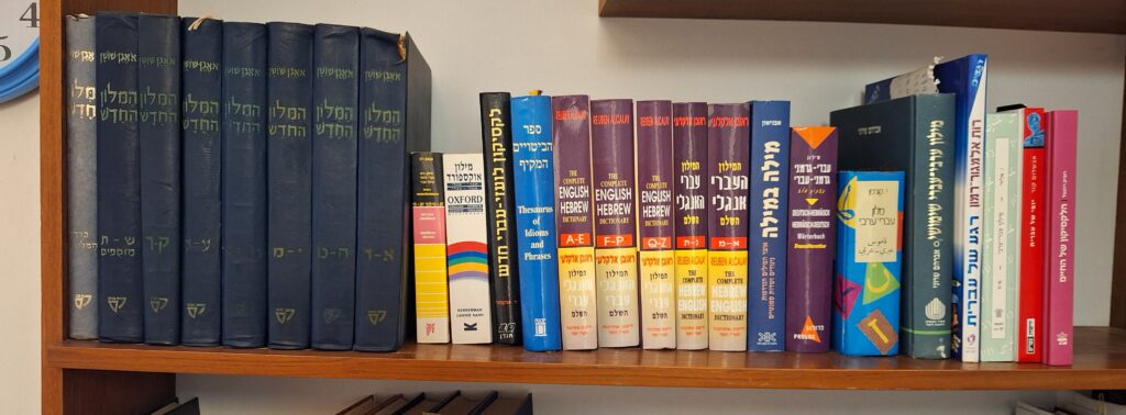 מילונים עברית/ערבית/אנגלית/גרמנית וספרים על השפה העברית