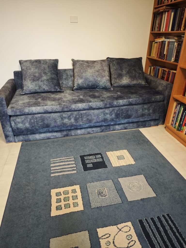 ספה נפתחת לשתי מיטות נפרדות. במצב מעולה- כמו חדשה. אורך מזרונים 2.00 מטר, אורך חיצוני 2.23. רוחב מזרונים 70 ס"מ. אין מעלית, הגישה דרך מדרגות. יש לרדת קומה אחת.