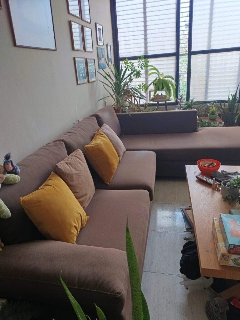 ספה פינתית במצב מצויין. צבע חום, ריפוד שמור.